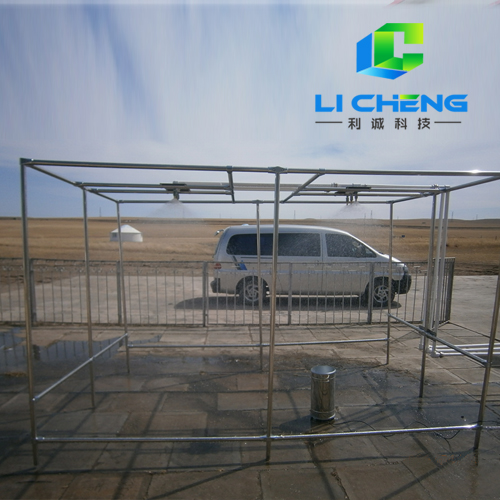 為使該系統(tǒng)模擬的降雨與自然降雨物理性能**大相似,采用世界上專業(yè)生產(chǎn)模擬雨滴噴頭的美國SPAYING SYSTEMS CO公司生產(chǎn)的FULLJET旋轉(zhuǎn)下噴式噴頭模擬降雨,配合幾十種不同規(guī)格的垂直全噴式雨滴模擬專用噴頭,疊加成一個(gè)雨滴噴射組(由3-5只噴頭構(gòu)成雨滴噴射組),即可有較大雨強(qiáng)變化,又可保證雨滴模擬效果從而形成從小到大的雨強(qiáng)連續(xù)可調(diào),雨滴形態(tài),降雨均勻度與自然降雨相似的人工自動(dòng)模擬降雨。